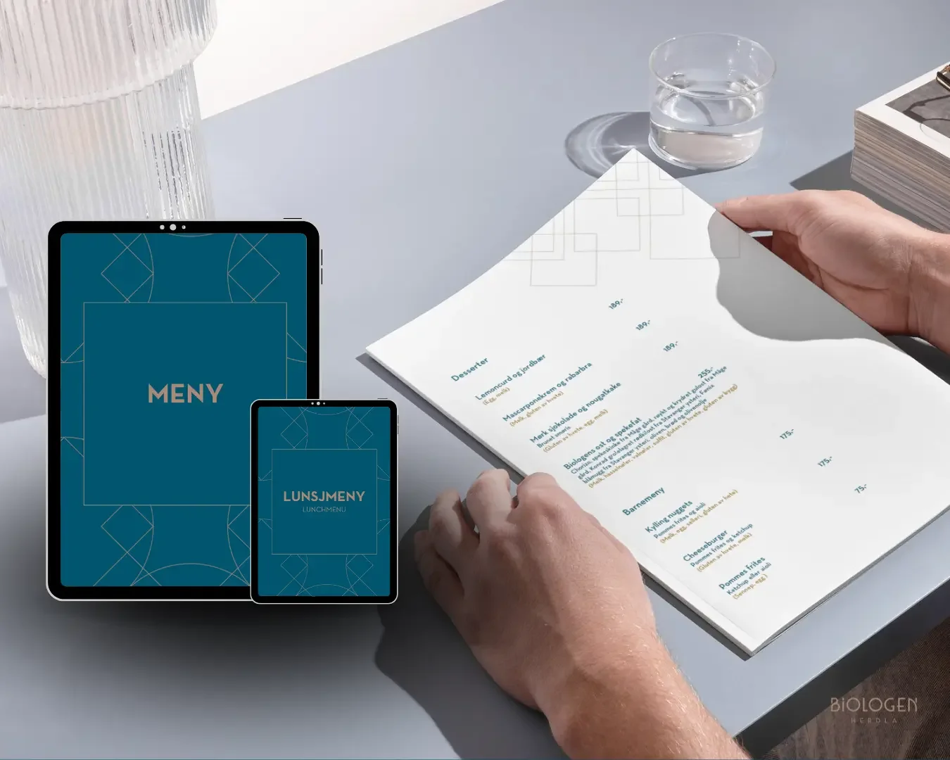 Biologen Herdla fikk en meny som fremstår gjennomført, profesjonell og i tråd med hotellets helhetlige uttrykk. Designet bidrar til en mer komplett gjesteopplevelse og understreker kvaliteten i konseptet.